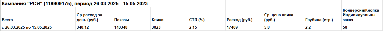 Общее время работы рекламной кампании: 26.03.2025 - 15.05.2023